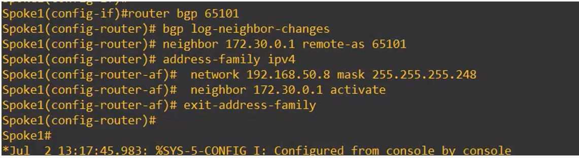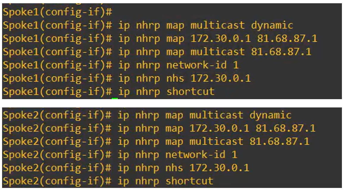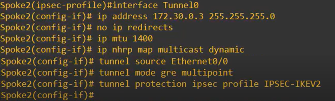 Below is the complete DMVPN configuration applied to the Central Cisco Spoke routers: