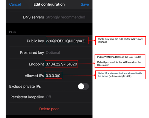 In this article, is shown how to configure a DAL router as a WireGuard server with a iOS WireGuard client.