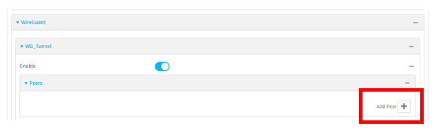 Browse back in the WG Tunnel configuration on DAL router and add a peer under the Peers section (System > Device configuration > VPN > WireGuard):