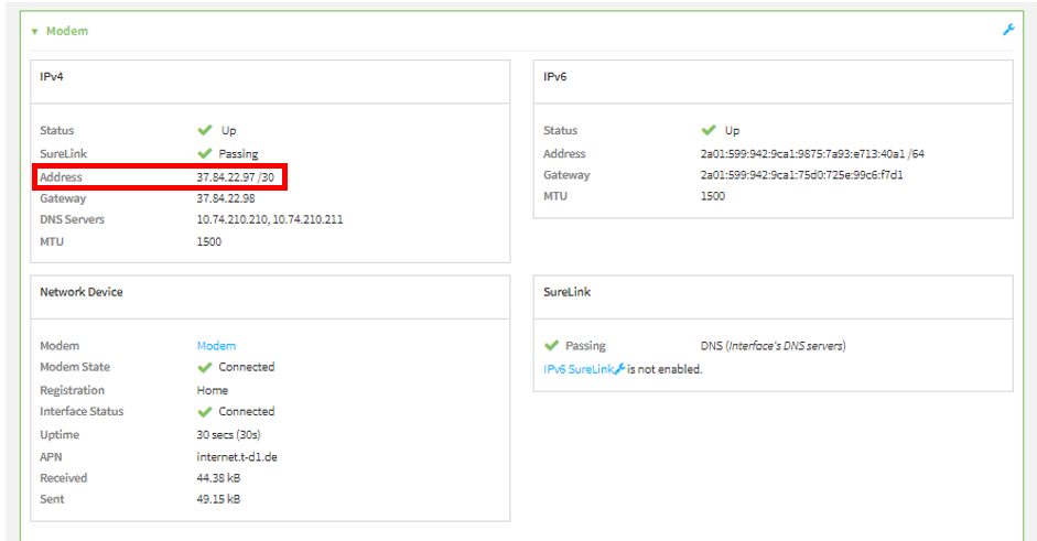 In this example, the WAN used is the modem, so browse to Status > Interfaces > Modems