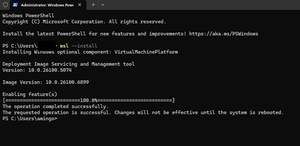 This installs WSL and sets Ubuntu as the default Linux distribution.