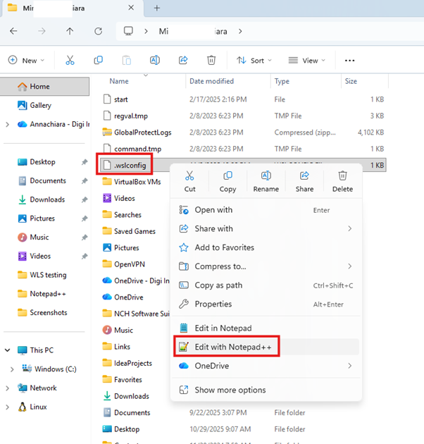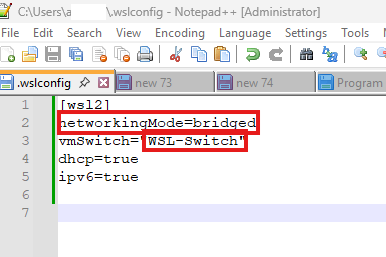 Create or edit the .wslconfig file in your user profile directory (%USERPROFILE%\.wslconfig) with: