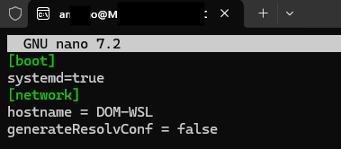 Once in Ubuntu terminal, Edit the /etc/wsl.conf file and add the following lines:
