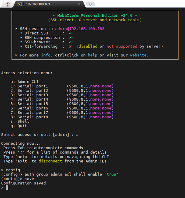 Access via SSH to the Admin CLI of the DAL Device You Must Enroll and enable shell access: