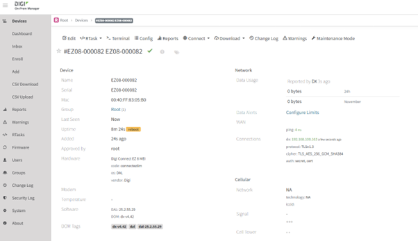 Once accepted, the device will appear in the Devices section and you can start manage your devices with Digi OnPrem Manager: