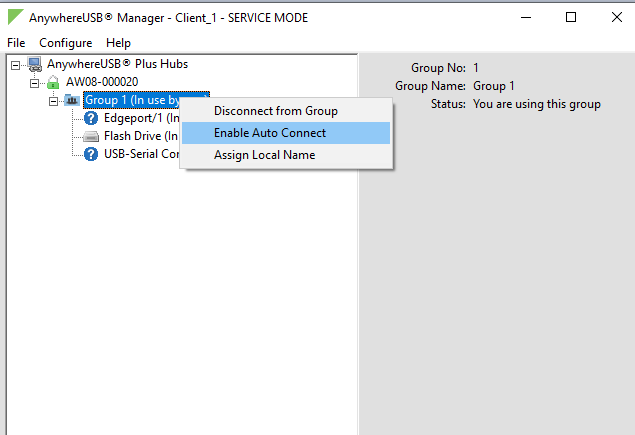 With this configuration, the devices in the groups connected to the computer are always available to the computer. The service automatically runs in the background.